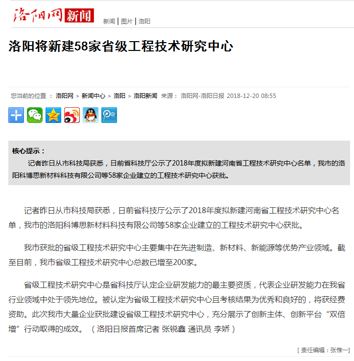 熱烈祝賀我公司獲批為2018年度河南省工程技術(shù)研究中心